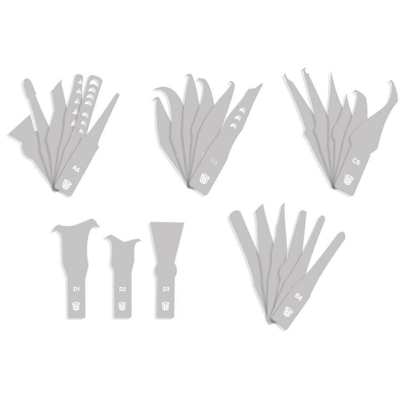 Con una pequeña caja de plástico para guardar todas las cuchillas y mantenerlas organizadas y seguras en ella.