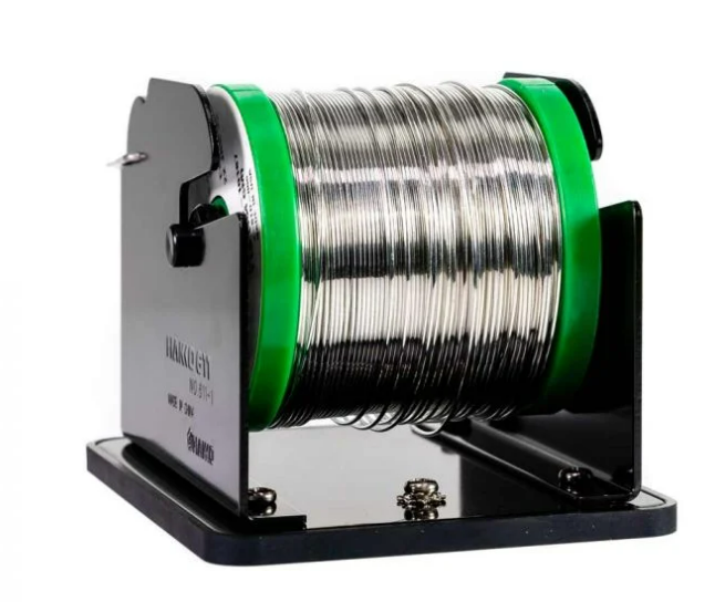 El soporte para carrete de soldadura Hakko 611 mantiene su banco ordenado al extraer suavemente el alambre de soldadura según lo necesite.
