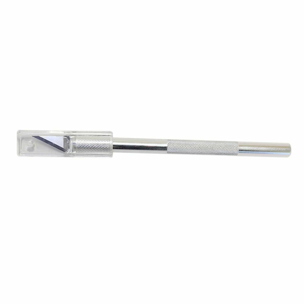 Exacto es una herramienta de corte extremadamente precisa utilizada en diversas aplicaciones, incluyendo la cirugía, modelismo, artes gráficas, y trabajos de precisión. Consiste en un mango metálico delgado que sostiene una cuchilla intercambiable de acero extremadamente afilada. La cuchilla puede ser fácilmente reemplazada para mantener la nitidez y precisión del corte.