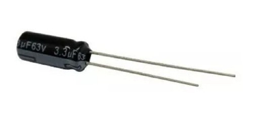 Un capacitor electrolítico de 3.3µF y 63V es un componente polarizado para almacenar energía eléctrica. Tiene una capacitancia de 3.3 microfaradios y soporta hasta 63 voltios de tensión. Se usa en filtrado y desacoplo en circuitos electrónicos.