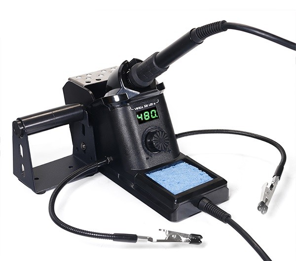 2. [Solución óptima para ahorrar espacio] Este modelo ofrece una combinación perfecta de estación de soldadura y soporte para cautín. El metal perforado especialmente diseñado en la parte posterior de la máquina puede almacenar puntas de repuesto perfectamente. Buena opción cuando el espacio en la mesa de trabajo es insuficiente. ¡Optimice el espacio y simplifique su encimera con este gran ahorro de espacio!