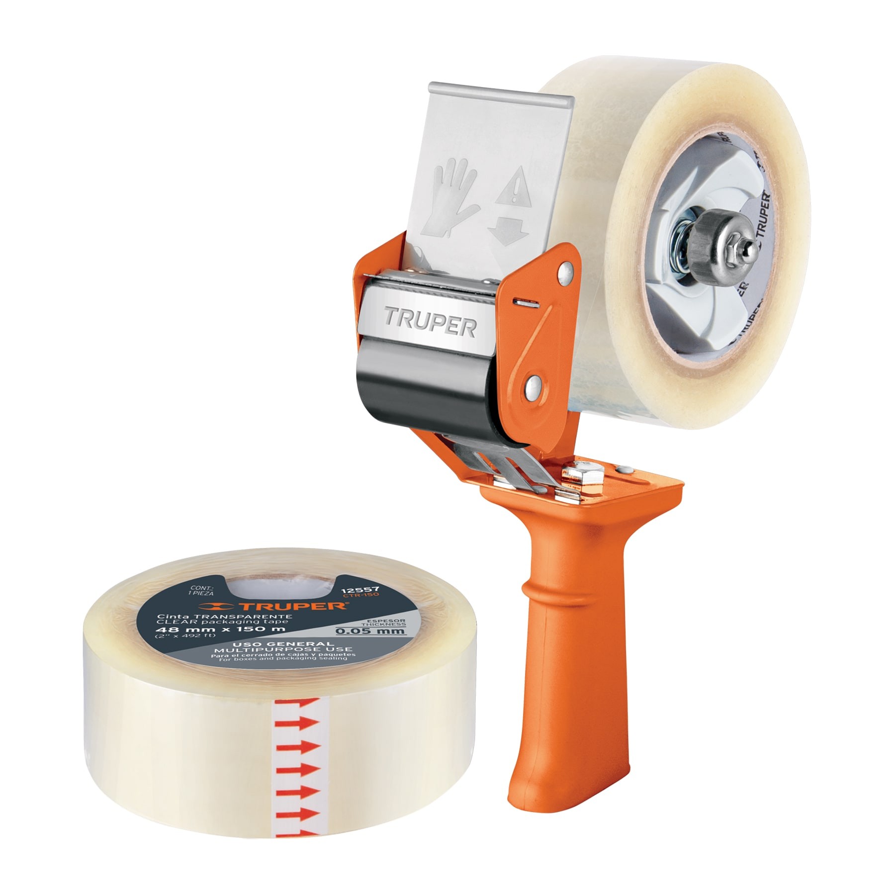Fabricado en acero y polipropileno de alto impacto. Incluye 2 rollos de cinta transparente con adhesivo acrílico de 50 m