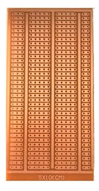 La Placa Perforada Doble Cara 5×10 cm o tarjetas PCB pre perforadas cuenta con el espaciamiento estándar del protoboard o empaquetado DIP, de 2.54mm, ideal para construir prototipos rápidos y sin la necesidad de tener que imprimir o mandar a fabricar un diseño de PCB. Este tipo de placas requieren que cada componente esté soldado a la placa y además las interconexiones entre ellos sea realizada a través de cables o caminos de soldadura.