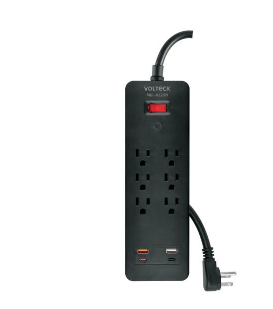 Multicontacto 6 entradas, 2 USB A + 2 USB C, negro, VOLTECK