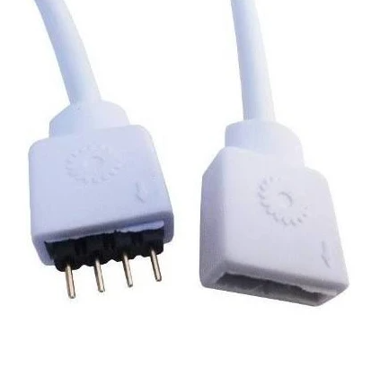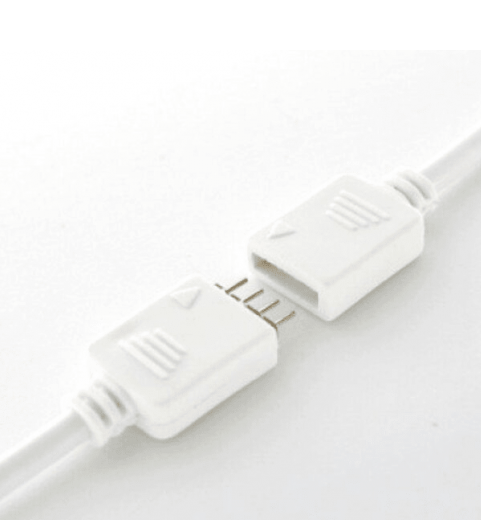 Juego de conectores de alimentación para tiras de LEDs RGB 5050 que te permite una instalación más rápida y segura al no tener que soldar la tira directamente a la fuente de poder o a el controlador RGB. Estos conectores se sujetan a presión y constan de 4 pines.