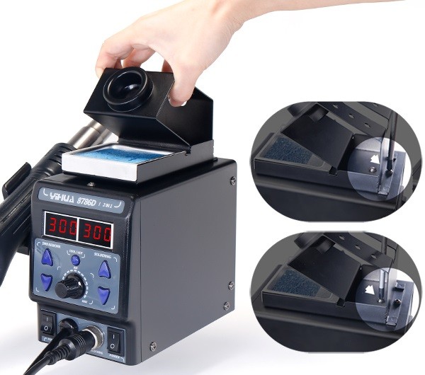 Esta estación de retrabajo de aire caliente presenta un PID sistema de control de temperatura programable y seguimiento de temperatura en tiempo real, también una corrección automática de temperatura con compensación de velocidad rápida y mínima tolerancia.