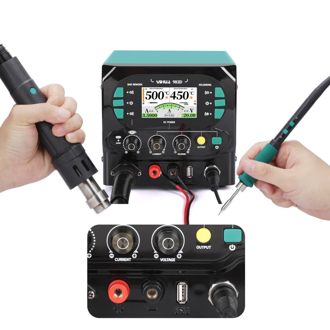 Precalentador con Cautín y Pistola de Calor Yihua 853AAA+