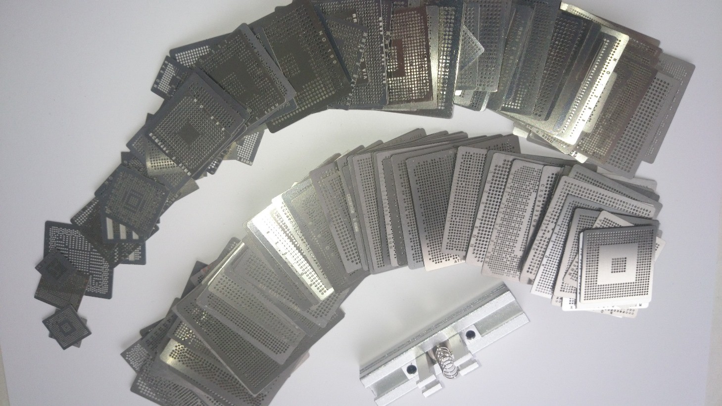 Los Estencils de calor directo permiten aplicar calor sobre el estencil para soldar las esferas al BGA, en vez de los convencionales que se debía de retirar el estencil para poder aplicar calor para soldar las esferas.