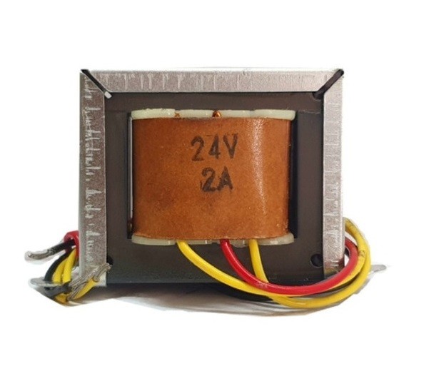 Transformador 24V 2A: Dispositivo que convierte la corriente alterna (AC) de una fuente de alimentación a 24 voltios, proporcionando hasta 2 amperios de corriente. Ideal para alimentar equipos y sistemas que requieren una tensión de 24V y una capacidad de corriente de 2A.