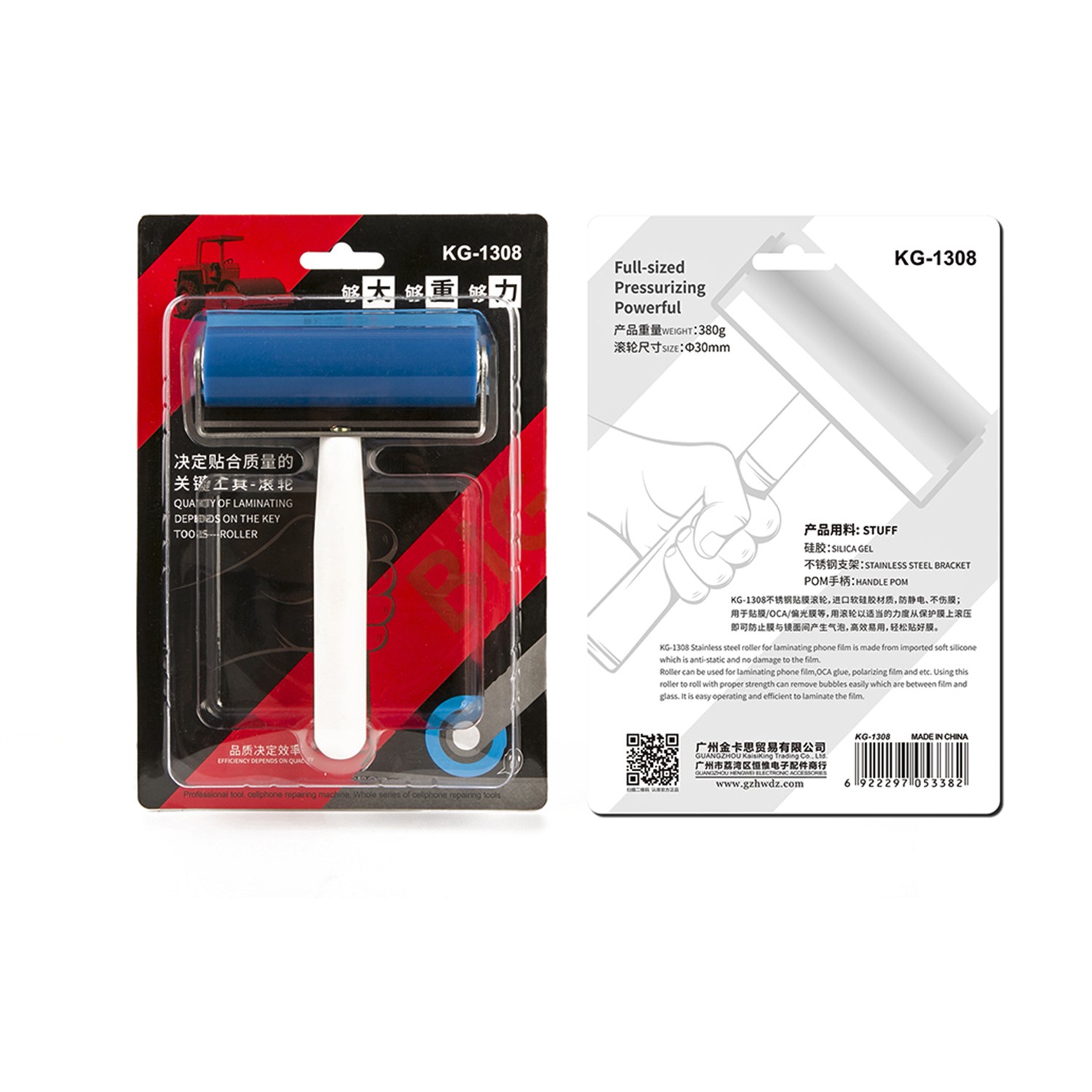 El rodillo se puede utilizar para laminar OCA en teléfono, el pegamento LOCA, la película que polarizada, Etc. Utilice este rodillo rodando con fuerza apropiada para quitar fácilmente las burbujas que están entre la película y el vidrio. Es fácil operar y eficiente para laminar.