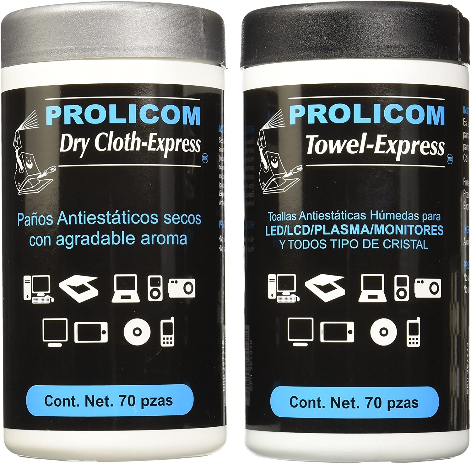 Incluye dos frascos con 70 toallas c/u.