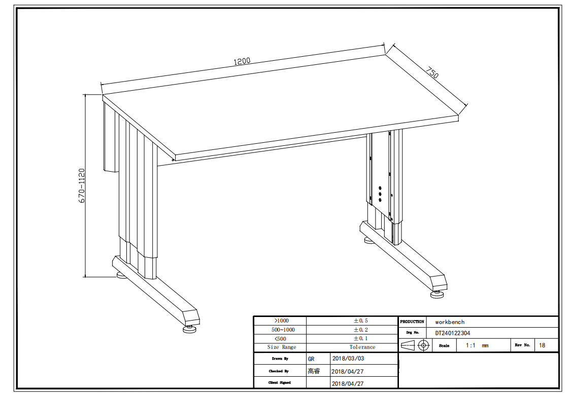 Mesa de trabajo ESD de 120cm con altura ajustable