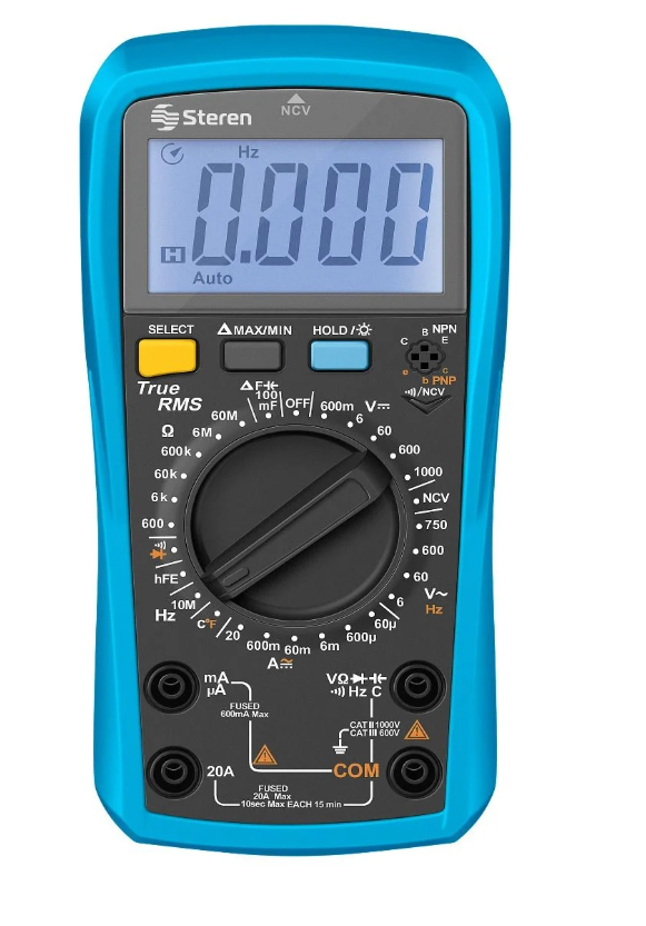 Detección de voltaje sin contacto (NCV): Incorpora un sensor que permite detectar voltaje (no medición) en un cable, pastilla o enchufe.