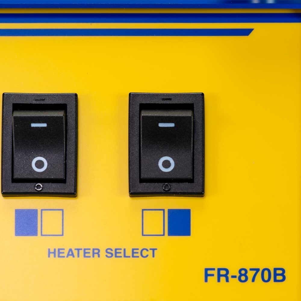 El FR-870B es un reemplazo actualizado para el popular precalentador IR Hakko FR-870 que incluye una actualización para usar las nuevas lámparas de filamento de carbono de alta eficiencia y las nuevas funciones de software que se encuentran en el precalentador IR de 4 zonas FR-872, lo que le permite para controlar la velocidad de rampa a 1, 2 o 3 grados Celsius por segundo cuando está en uno de los dos modos de termopar.