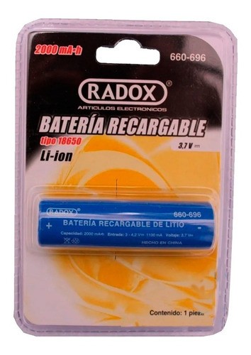Esta batería cuenta con 2000 mAh muy duradera, con un voltaje de salida de 3.7 en corriente directa. Este tipo de pilas son ideales para pequeños robot, carritos y programa con Arduino. Son muy livianas y ocupan poco espacio. Es muy utilizado en Juguetes, Herramientas eléctricas, Electrodomésticos por que su capacidad y potencia son muy eficientes en cualquier trabajo.