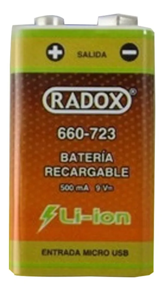 Batería 9V Recargable Li-Ion 500mA, Carga por MicroUSB |