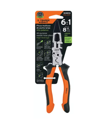 Pinza multiuso 8" punta larga, comfort grip, Truper expert