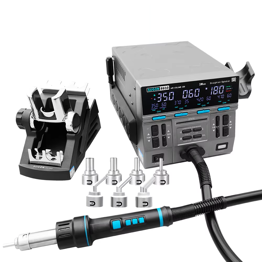 Calefacción de 3 modos: Personalice su soldadura con modos de calentamiento suave, general y rápido en la estación de aire caliente SUGON 8650.