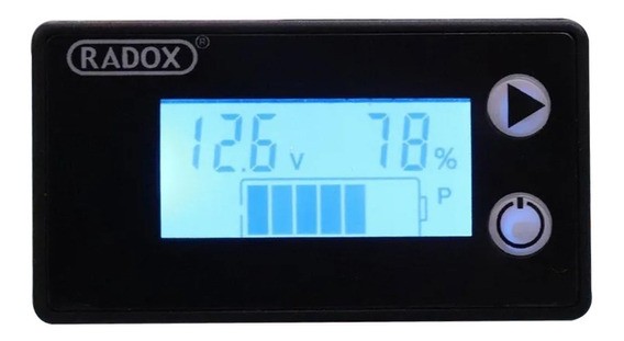 Este indicador es útil para conocer la capacidad de carga restante de baterías. Además del indicador gráfico, muestra el porcentaje actual en formato numérico. Se sugiere su uso con voltajes de 7 a 14V.