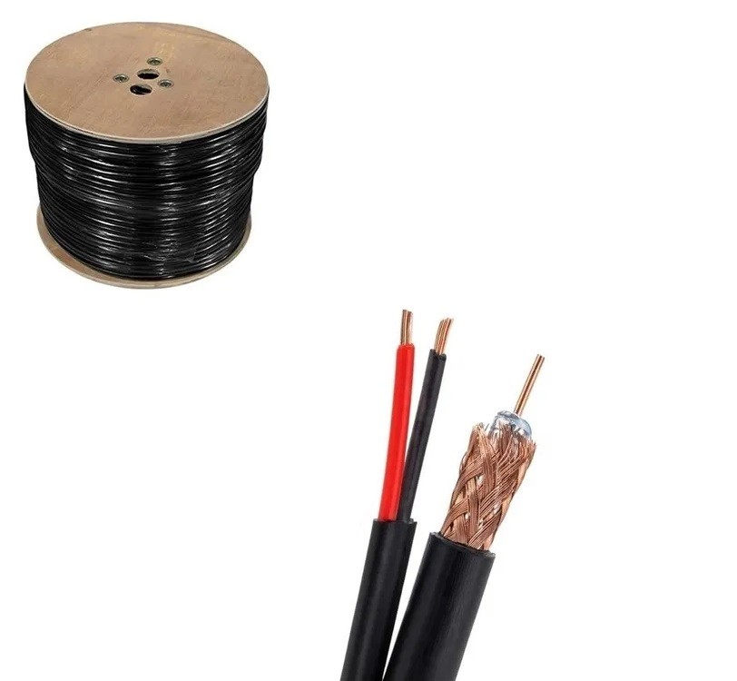 Cable coaxial siamés RG59, de 75 Ohms y 95% de malla de cobre. Cuenta con dos cables calibre 18 para la alimentación de cámaras de video. Se vende por metro o en rollo de 305 m.