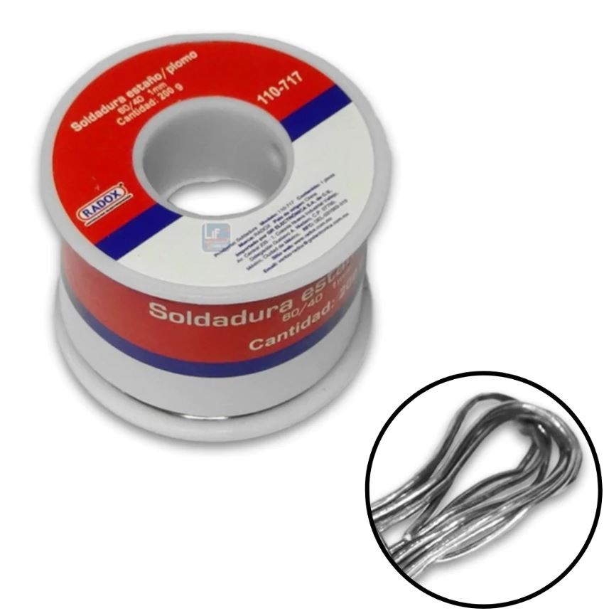 ROLLO DE 200GR DE SOLDADURA ESTAÑO/PLOMO DIAMETRO 1MM RADOX