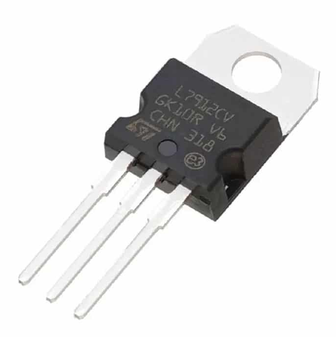El Regulador LM7912 de voltaje negativo con tensión de salida fija de -12V, compuesto de silicio diseñado para mantener un nivel de tensión constante y lineal, esta versión viene montado en un encapsulado TO-220 con una capacidad de corriente de hasta 1.5A (con un muy buen disipador de calor).