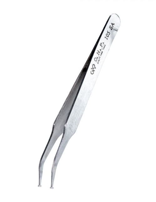 Pinzas de punta plana y curva de 2,6 mm de ancho para manipular componentes SMD y encapsulados SOT.